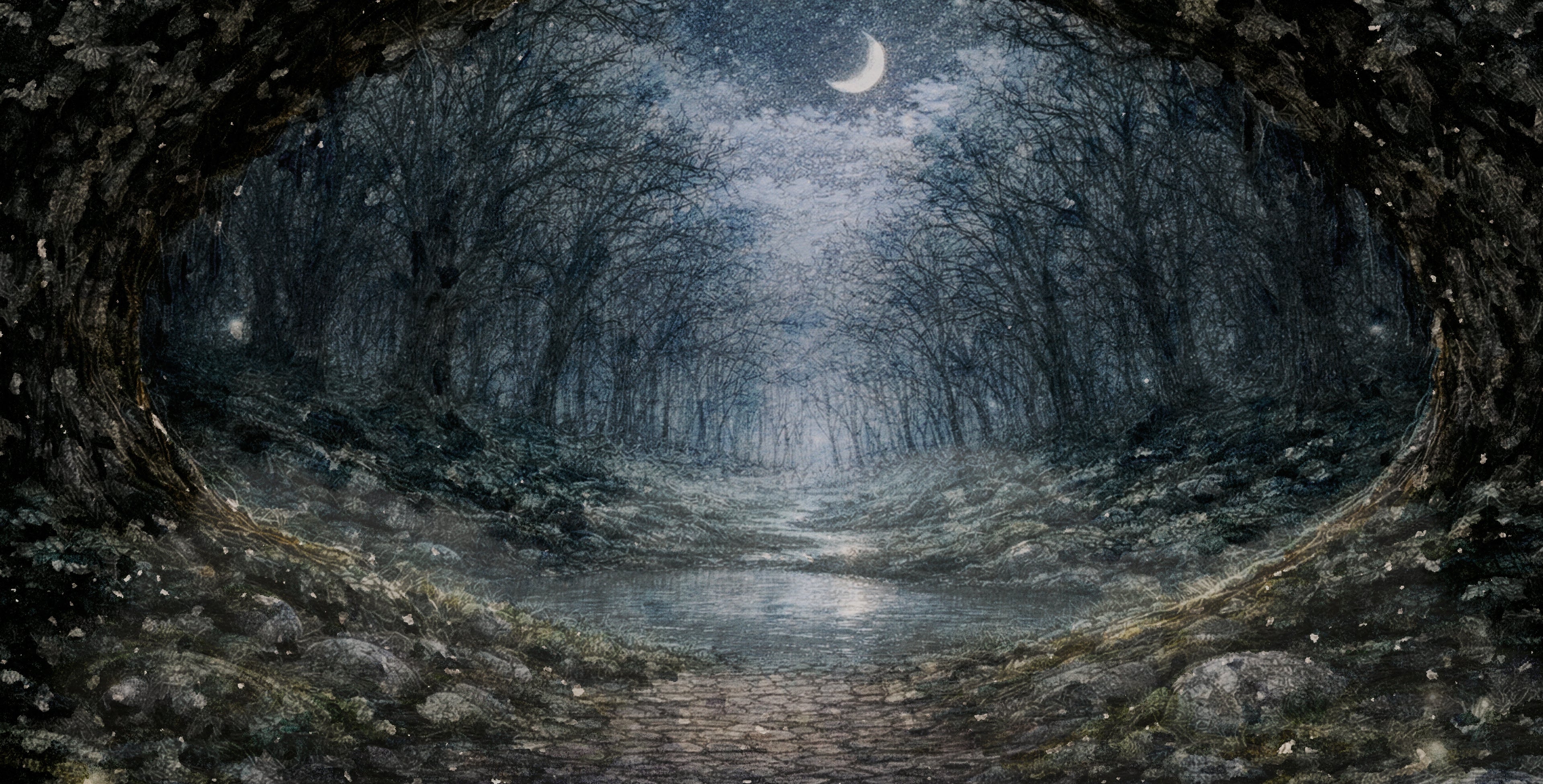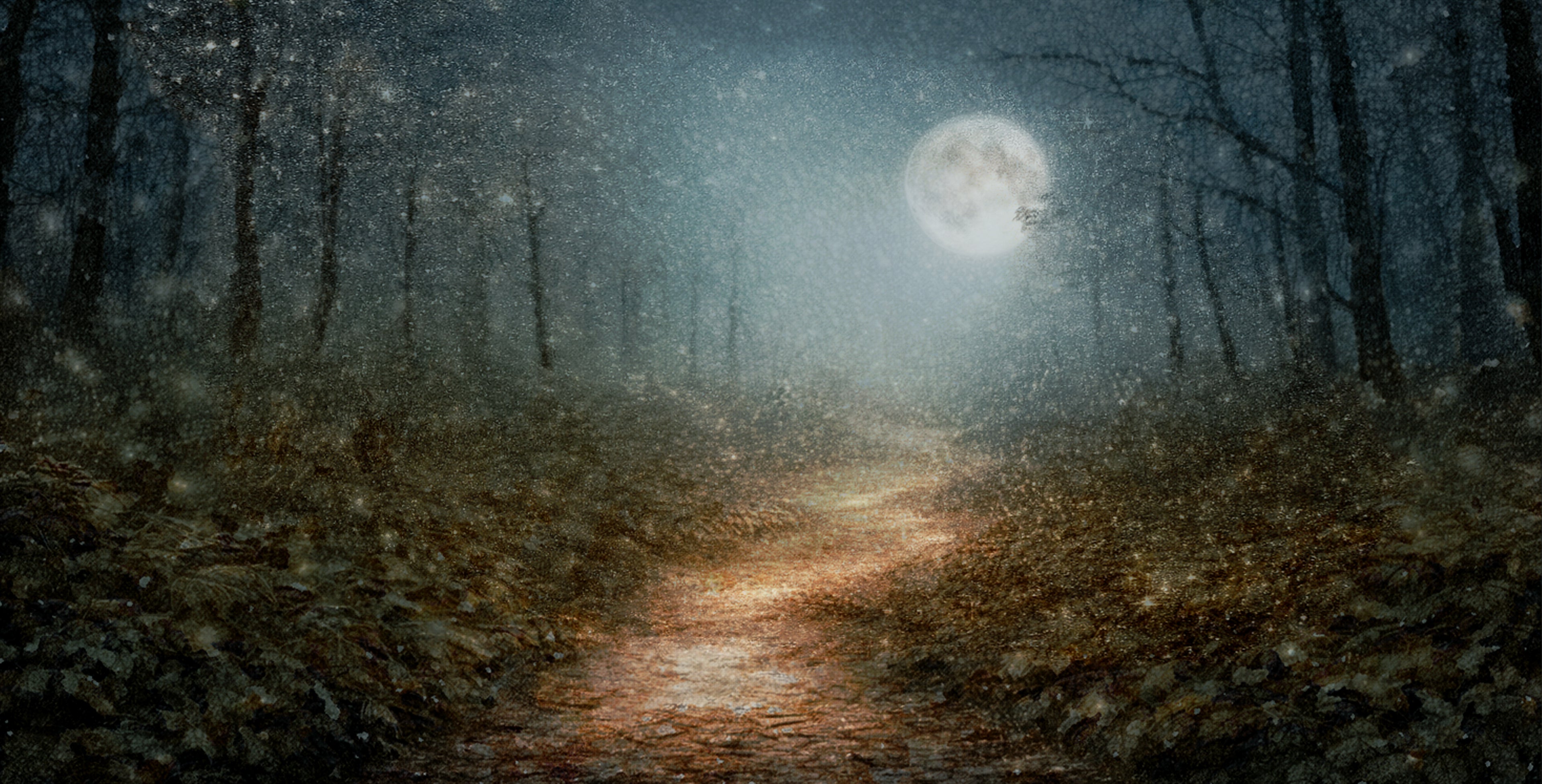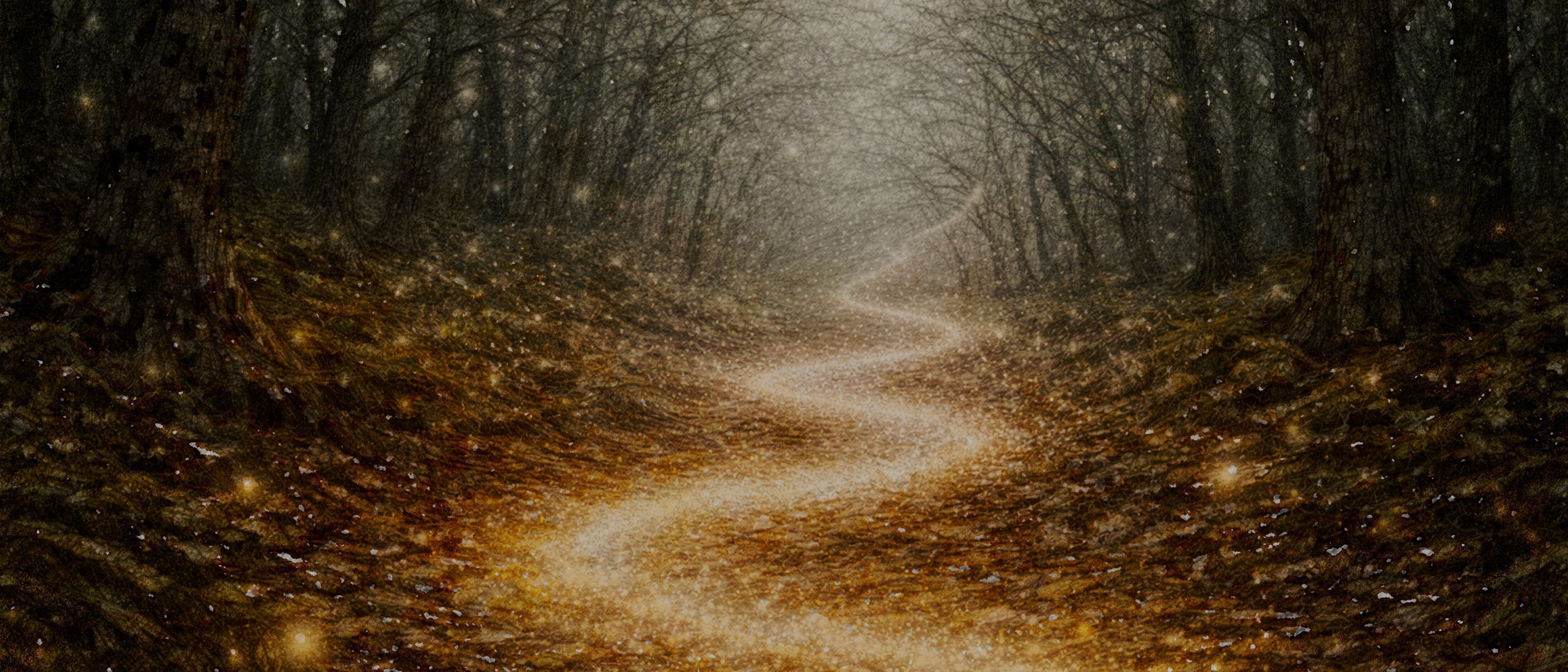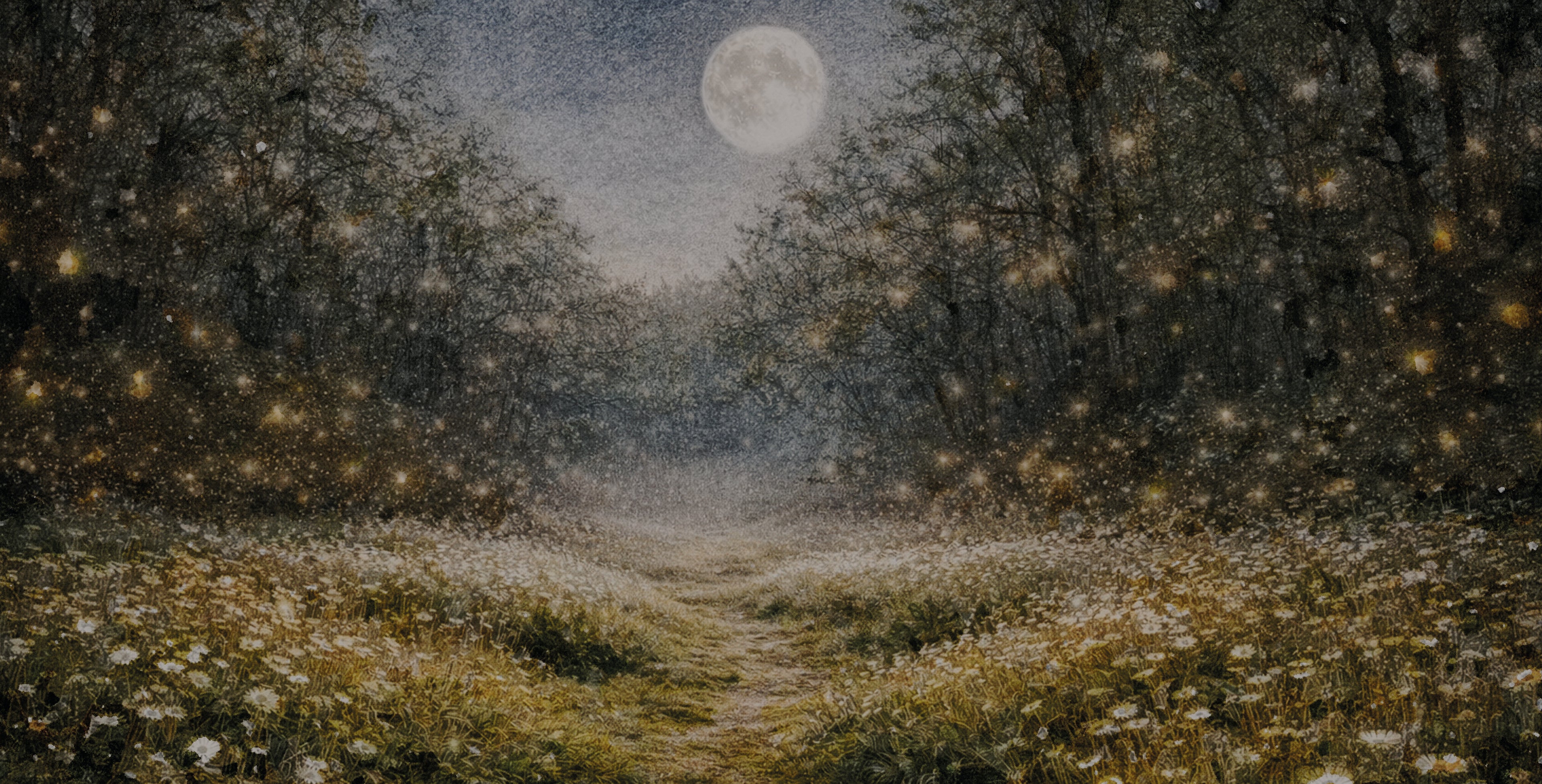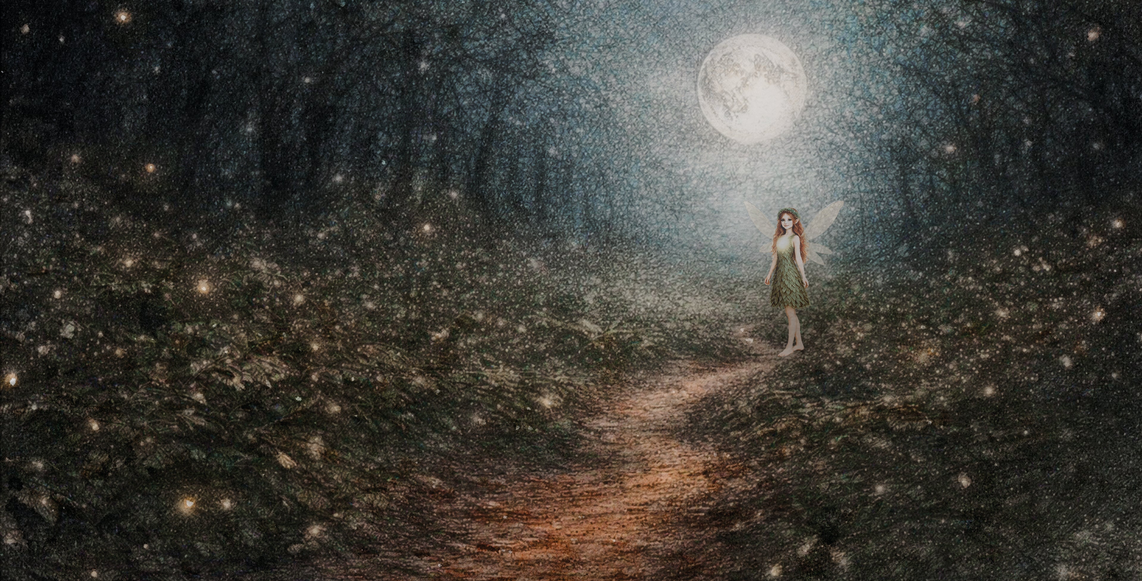 Djupt inne bland träd och mjuk mossa finns en plats där natten aldrig känns farlig. Där lyser stigen svagt, där djuren vakar och där små gnistor av ljus svävar genom luften.