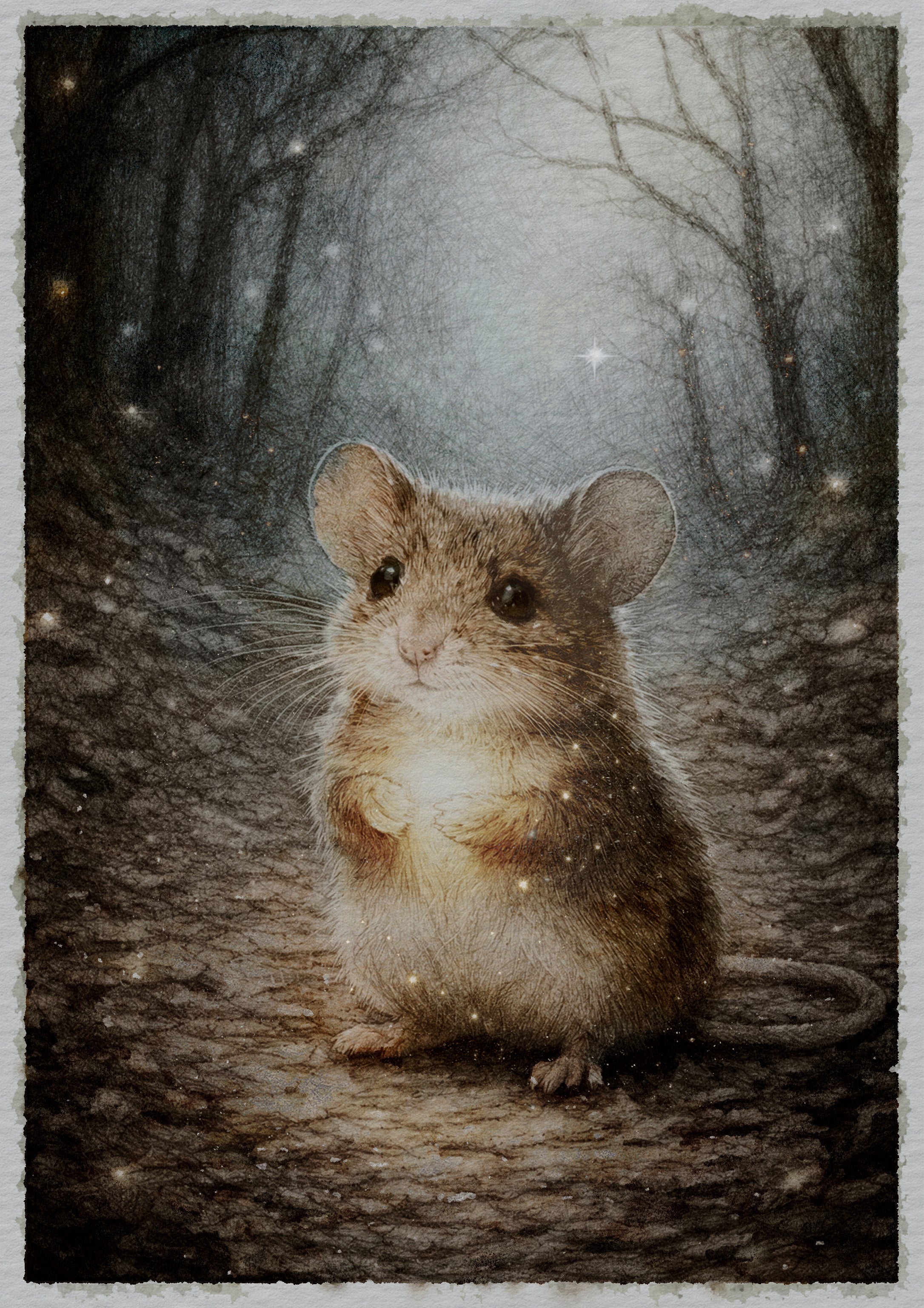 Musen är Glimmarskogens minsta ljusbärare. Med sitt lilla gyllene ljus visar den att mod inte sitter i storleken, utan i viljan att våga gå först. Den springer före på stigen, väntar in och påminner om att även det allra minsta kan lysa starkt.