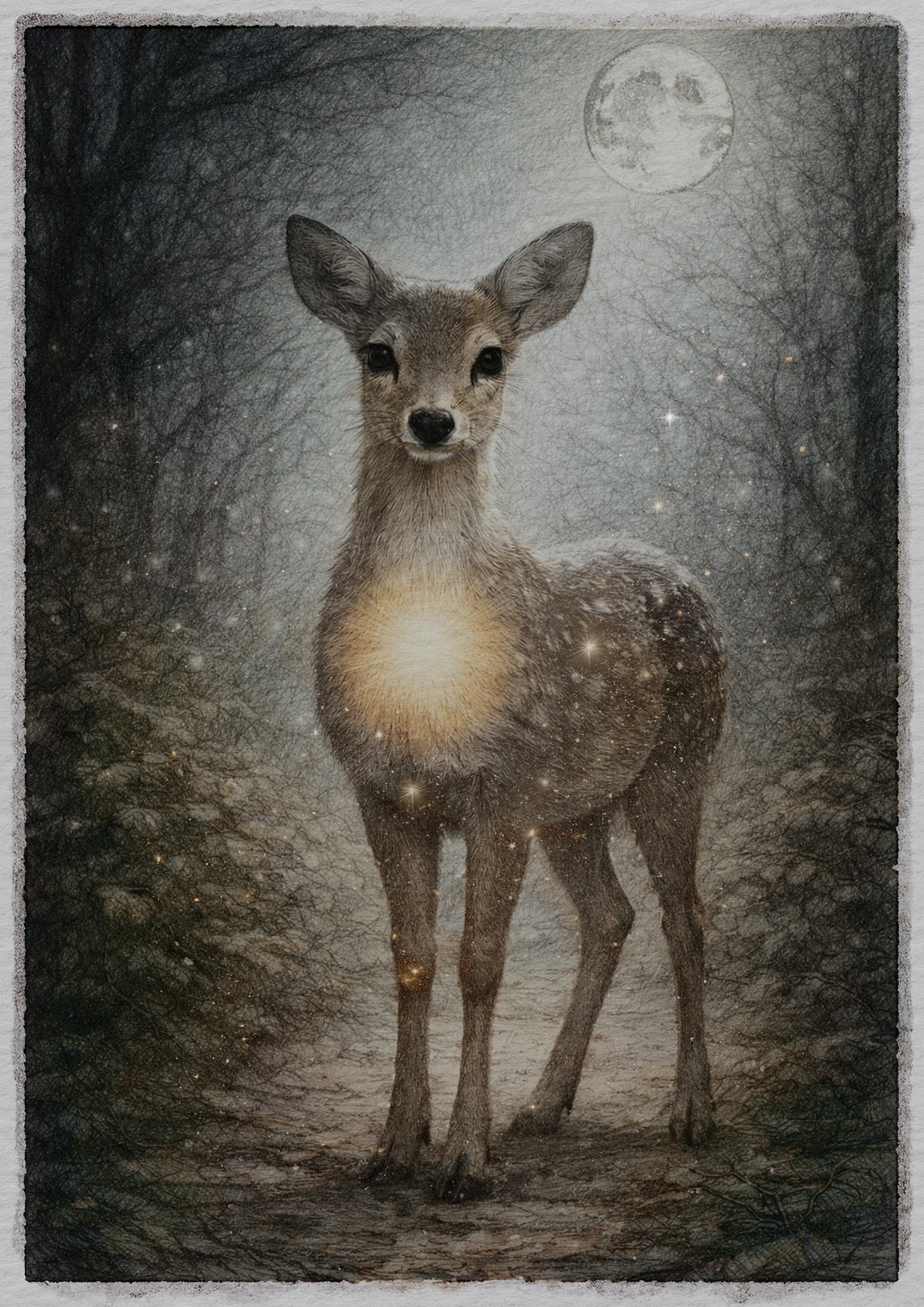 Rådjuret är Glimmarskogens trygga moder. Med lugn, kärlek och stilla styrka vakar det över skogen och visar att det ibland är den mjukaste tryggheten som bär allra mest.
