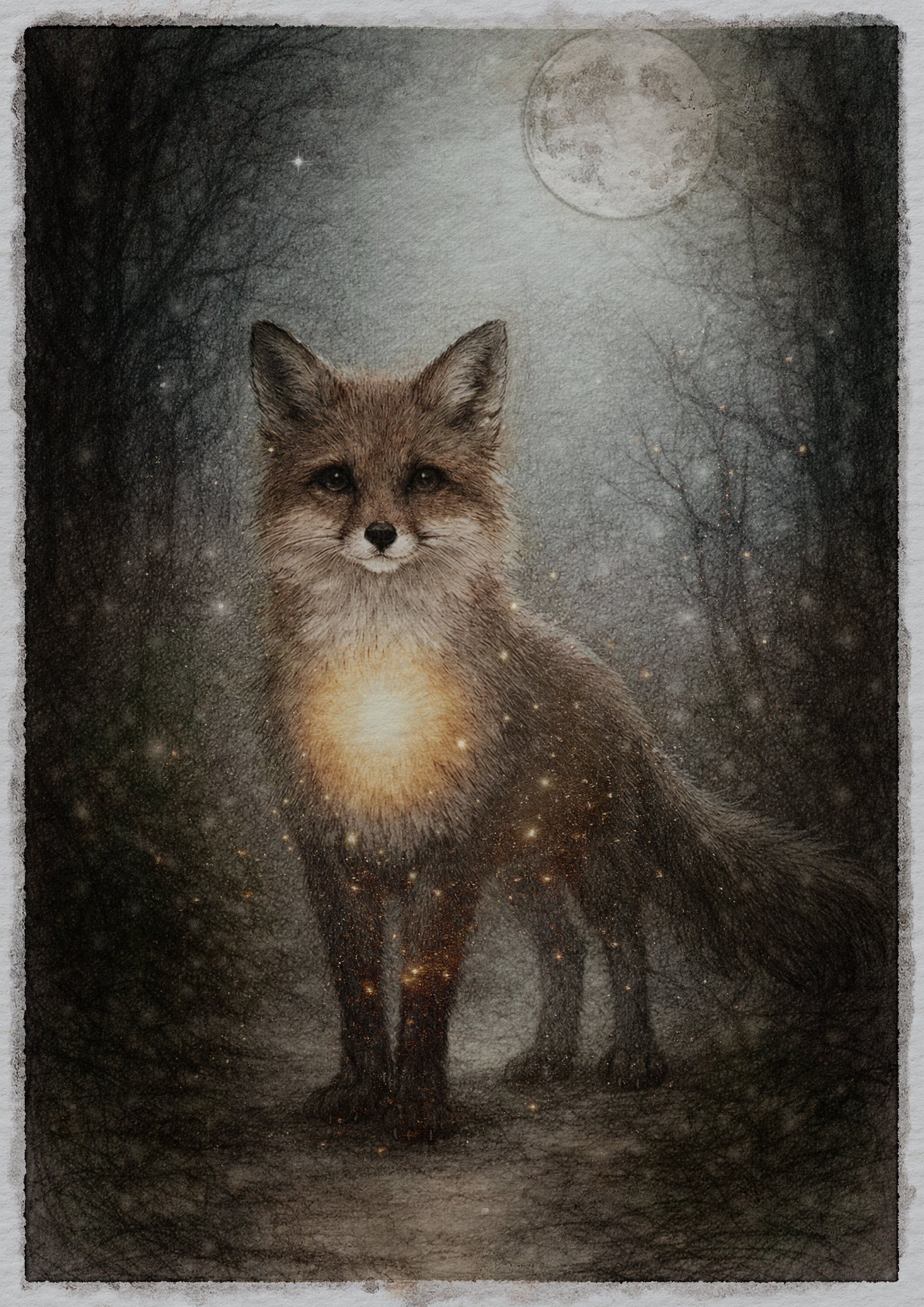 Räven skyddar glöden i skogen och håller modet levande i mörkret. Med värme, styrka och självkänsla visar den att den som tror på sitt eget ljus också kan hitta vägen.