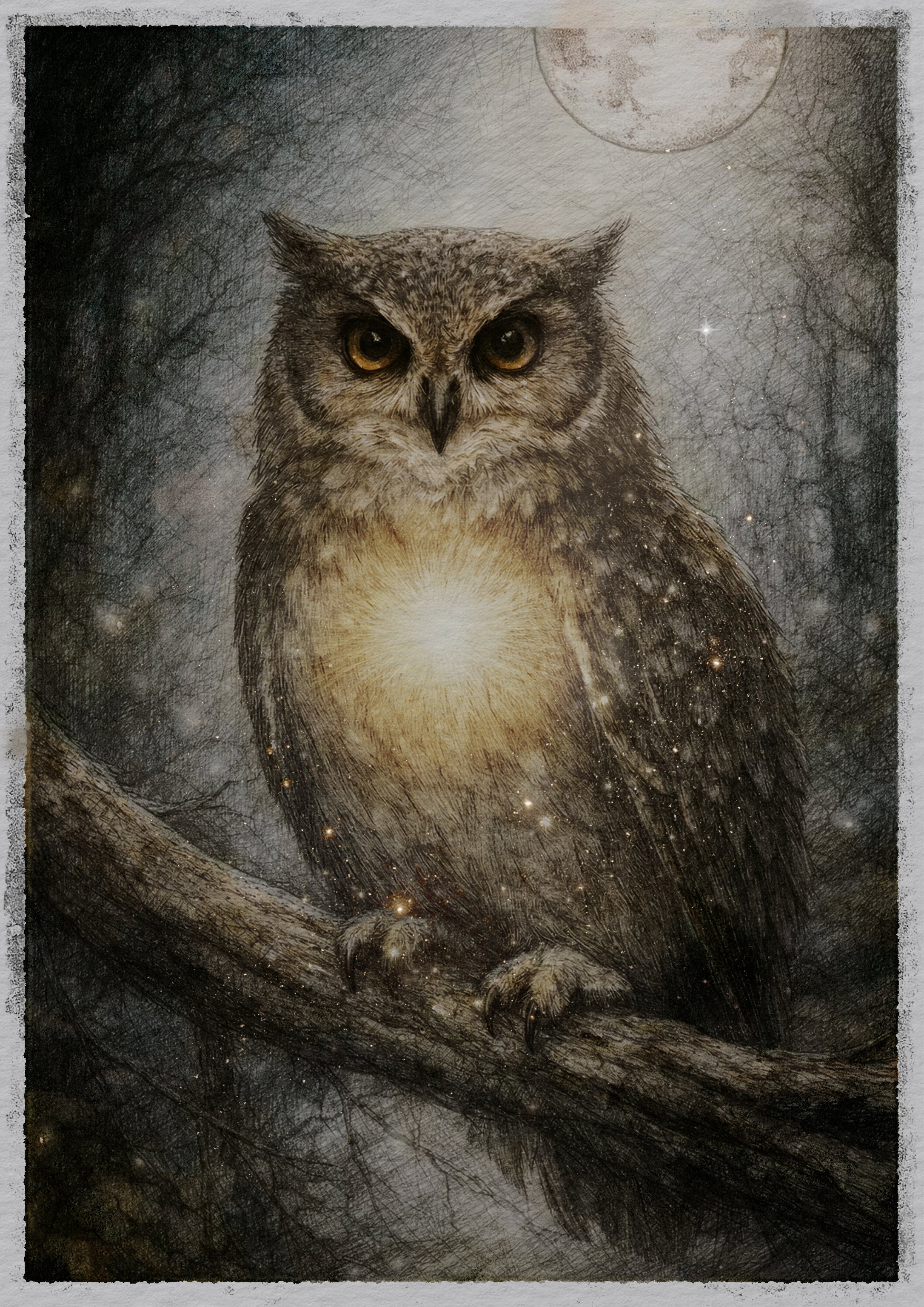 Ugglan vakar när skogen tystnar. Med lugn, visdom och stillhet visar den att det viktigaste inte alltid är att tala, utan att finnas där.